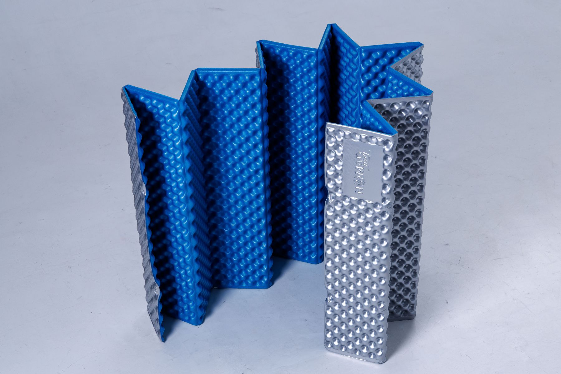 Складной туристический коврик NomadWay — идеальное решение для путешествий! Его уникальная форма позволяет комфортно и тепло выспаться, сэкономить пространство при складывании, а также обеспечивает небольшой вес. Собирается коврик гармошкой по специальным линиям. В собранном виде данная модель имеет размер 56х13х14 и может выполнять роль своеобразной табуретки, что очень удобно во время остановок. Фиксирующие резинки идут в комплекте. Размер коврика в разложенном виде — 185х56х1,5 см. Его уникальный дизайн имитирующий лоток для яиц и революционный материал исполнения – вспененный полистирол (IXPE), позволяют хорошо удерживать тепло вашего тела и не пропускать холодный воздух от земли. Дополнительно этому способствует алюминиевое покрытие нижней стороны коврика.