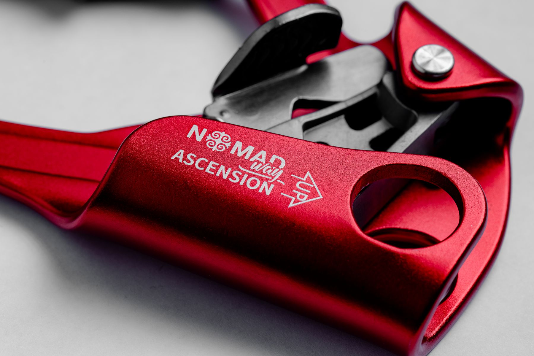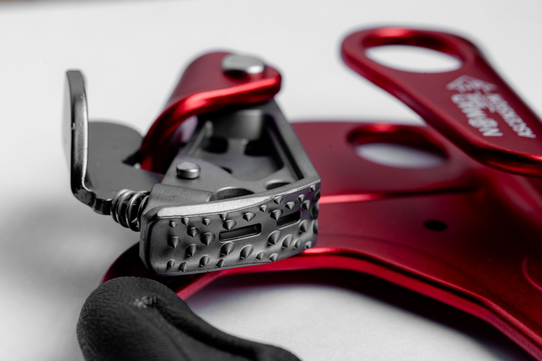 В нижней части жумара расположено отверстие, позволяющее одновременно присоединить два карабина класса В для уса самостраховки и стремени.